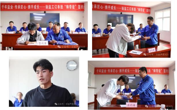 7月8日,公司海鹽制鹽工訂單班“師帶徒”簽約儀式在制鹽場舉行。公司黨委副書記、工會主席張士勇,人力資源部負(fù)責(zé)人,制鹽場領(lǐng)導(dǎo)班子成員出席。