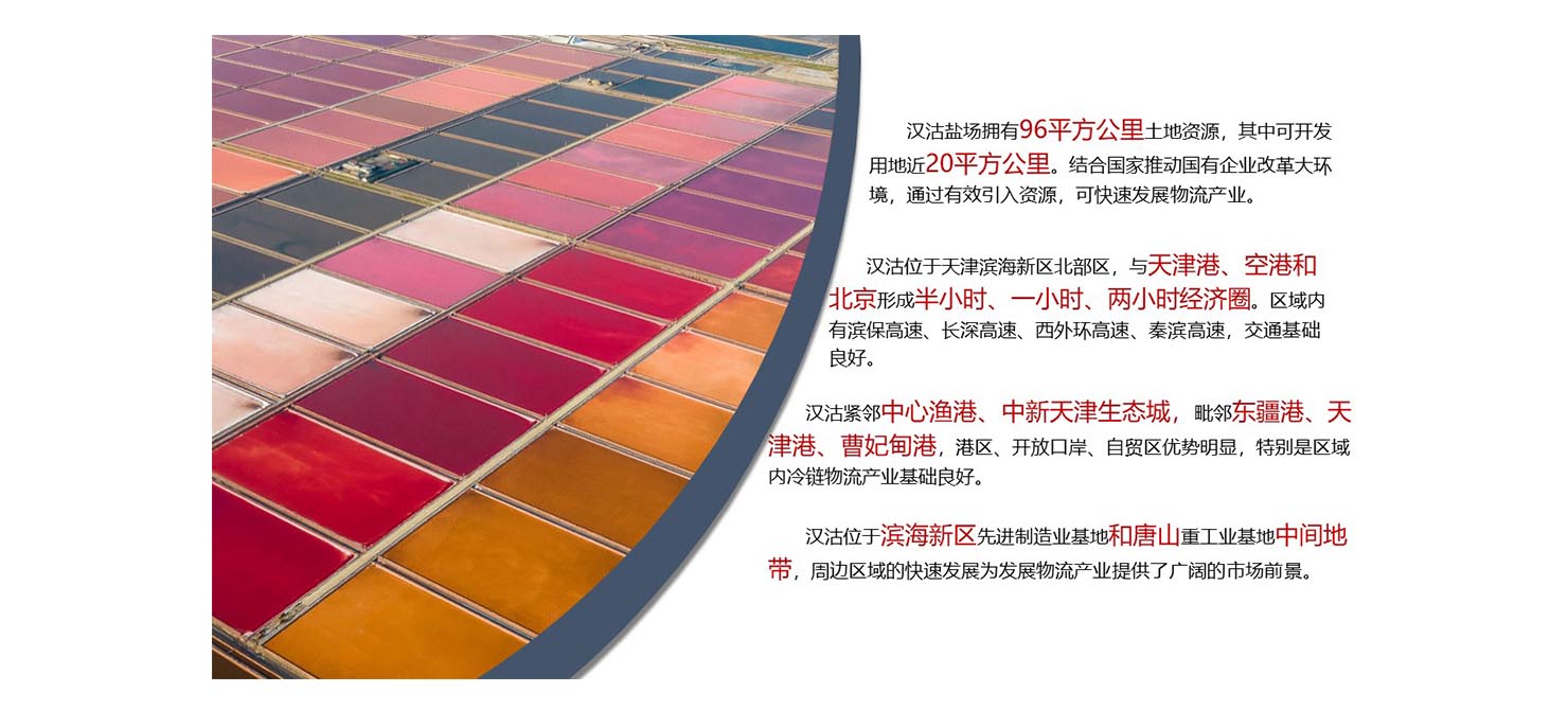 物流作為漢沽鹽場最新的產(chǎn)業(yè)轉(zhuǎn)型發(fā)展方向,將依托東疆港、天津港、曹妃甸港、天津空港四港優(yōu)勢,充分利用區(qū)位特點(diǎn),融入?yún)^(qū)域發(fā)展,重點(diǎn)以物流園區(qū)和冷鏈等專業(yè)物流為方向開展招商合作,以期形成更好的集聚效應(yīng),服務(wù)好京津冀相關(guān)產(chǎn)業(yè),努力實(shí)現(xiàn)企業(yè)轉(zhuǎn)型升級(jí)。
